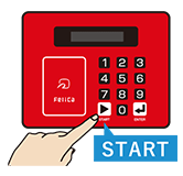 再び開錠するときは、自転車操作パネルの「START」 ボタンを押して発行されたICカードをかざしてください。